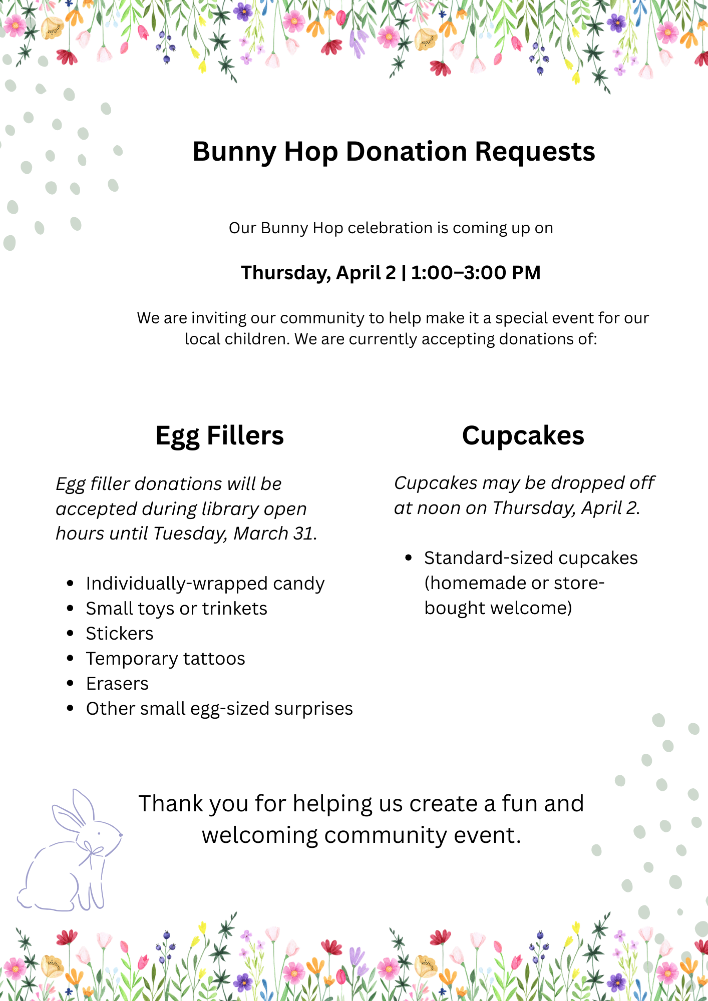 We’re getting ready for our second annual Bunny Hop and would love the community’s support and participation!